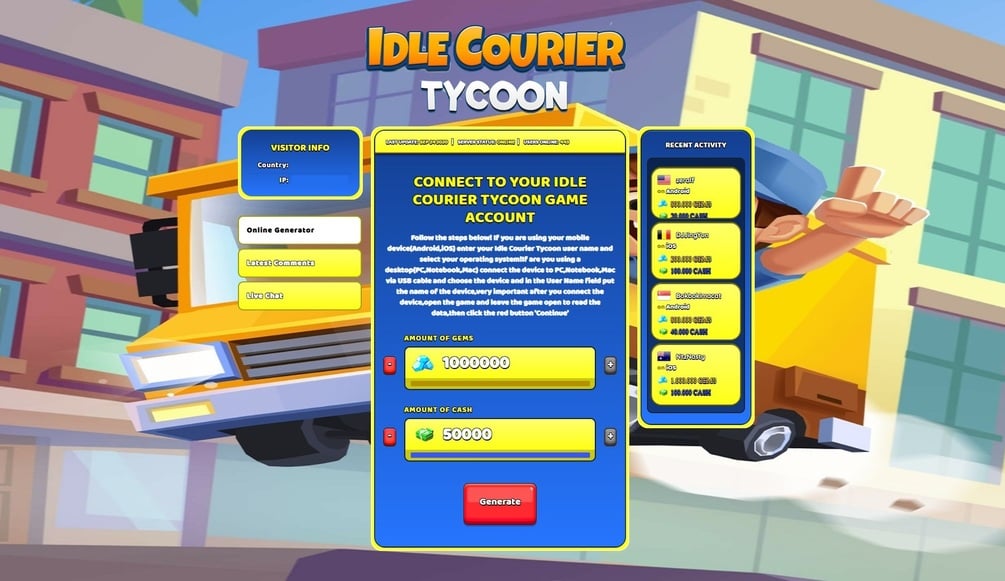 Idle Courier Tycoon Cheat – Idle Courier Tycoon Hack Gems and Cash